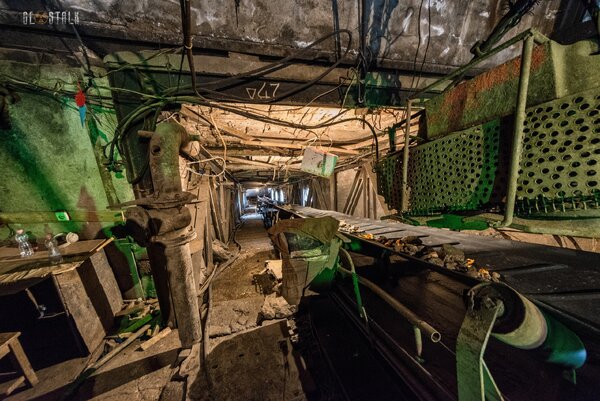 Одна из конвейерных лент уходила куда-то вглубь горы, и это было единственное место, куда мы не рискнули спуститься.