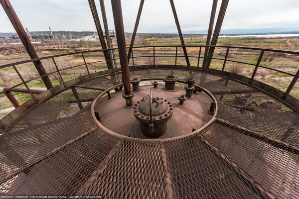 Итак, мы добрались до этих самых газгольдеров. Чувствуя себя в полной безопасности (ведь никаких признаков охраны не было!), мы решили подняться наверх. Сделать это оказалось несложно — помогла сохранившаяся маршевая лестница.