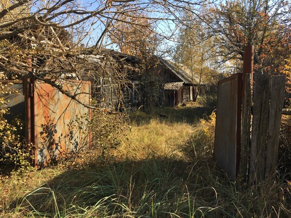 На этом фото видны массивные железные ворота. Подобные тяжёлые металлические конструкции — настоящая диковинка для зоны, если в селе не осталось самосёлов. Всё, что можно было сдать на металлолом, начали массово вывозить ещё в 1987-88 годах.