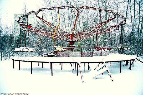 Карусель в парке Припяти сегодня — это скелет былого веселья.