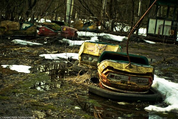 Опустевшие машинки на автодроме производят особенно гнетущее впечатление. Это очень печальное зрелище, напоминающее о внезапно остановившемся времени.