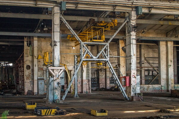 Весь этот комплекс цехов практически опустошён. Однако в самом дальнем его углу мне удалось обнаружить помещение, которое пока ещё не полностью разобрали. Здесь ещё остались островки металла, которые не успели отправить на переплавку.