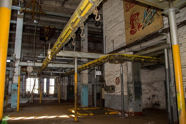 Передо мной предстал цех, некогда оснащённый подвесным конвейером, а ныне разрезанный на металлолом. Он находится в огромном блоке производственных помещений, который сейчас представляет собой почти пустую, зияющую пустотами коробку. Металлоконструкции вырезаны и вывезены, оставив после себя лишь воспоминания.