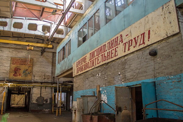 На стенах, покрытых пылью и паутиной, кое-где ещё можно разглядеть поблёкшие лозунги советской эпохи. Они, словно памятники ушедшей эпохе, всё ещё пытаются что-то сказать посетителям.