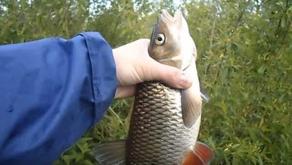Карп в это время года часто держится у самого берега, особенно под нависшими деревьями. Я не раз замечал, что проблем с его поимкой обычно не возникает, если правильно выбрать место. Он с большим удовольствием берёт на червя, распаренный горох и кукурузу. Карп любит стоять в зарослях травы, поджидая, когда с веток упадёт какое-нибудь насекомое. Именно в таких укромных местах часто попадаются самые крупные экземпляры, поимка которых — настоящая удача для любого рыболова.