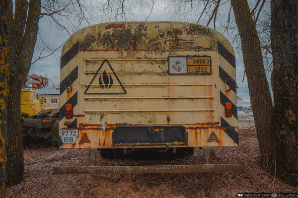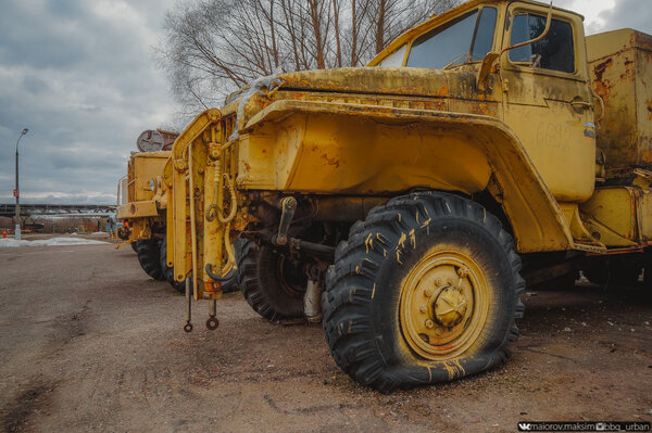 Эта коллекция специализированных машин расположилась на учебной площадке одного из подмосковных авиационных колледжей. Они стоят буквально у самого контрольно-пропускного пункта, но, к нашему удивлению, КПП оказался пустым, ворота были распахнуты настежь. Это позволило нам без всяких препятствий подойти и начать детальное знакомство с этим необычным парком техники.