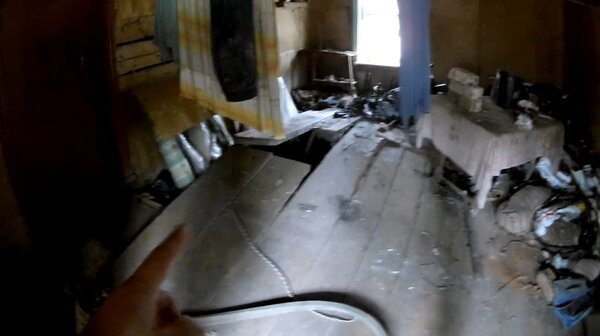 В первой половине строения пол был полностью разрушен, причём выглядело это так, будто его приподняли изнутри. Обычно, когда что-то ломают, повреждения идут сверху вниз — здесь же создавалось впечатление, будто некая сила давила снизу, выталкивая доски наверх.