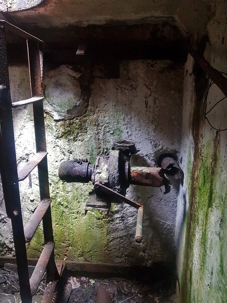 Электро-ручной вентилятор ЭРВ-49 от отсутствующей простенькой фильтро-вентиляционной установки, которой была оборудована каждая башня для очистки воздуха от опасных веществ.