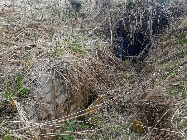 Метрах в пяти от башни, в зарослях, прячется вход в подбашенное сооружение.