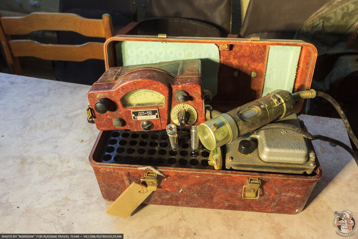 В ящиках, что стоят на зелёных лавках встречаются находки более интересные, например, старый дозиметр ДП-5Б.