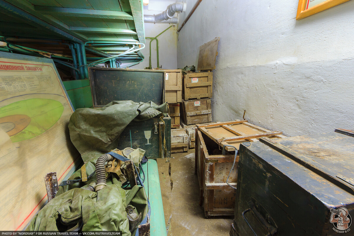 Тем не менее на вопросы гражданской обороны тут забили ещё при действующем предприятии — помещения захламлены и всё, что должно лежать на складе СИЗ зачем-то разложено на нарах.