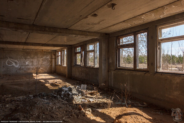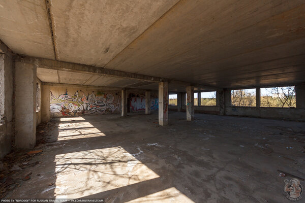 Сейчас внутри царит запустение: пустые помещения, стены, исписанные краской, а кое-где даже пробивается кустарник. Природа постепенно, но уверенно отвоёвывает эту территорию у человека.