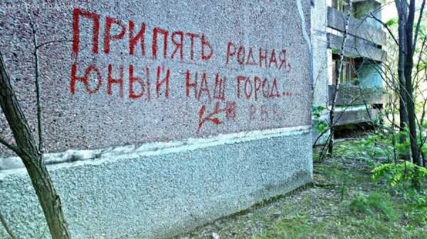 А эта трогательная надпись — уже не работа приезжих художников, а слова, оставленные бывшими жителями: «Припять родная, юный наш город...»