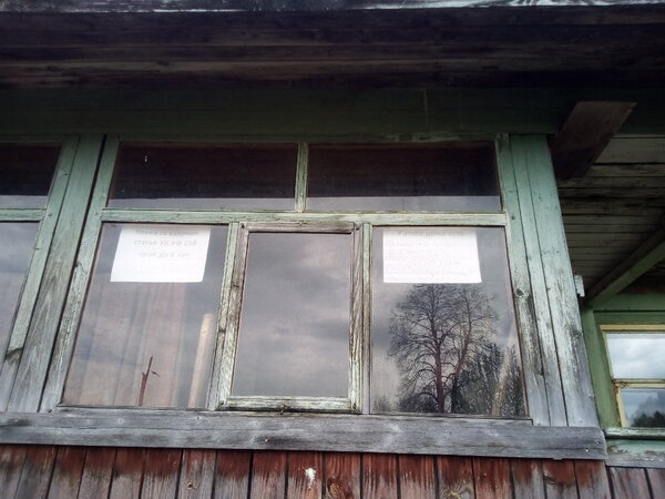 Первое, что я заметил — дверь в сени была приперта старыми носилками. Подойдя ближе, увидел, что вход в основное помещение заперт, а на нём висит записка с предупреждением о наличии хозяина. Получается, кто-то изредка наведывается сюда и даже пытается охранять своё имущество от посторонних.
