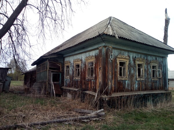 Передо мной предстал небольшой, но когда-то обжитый дом. По покрашенным наличникам было видно, что о нём заботились. Однако время неумолимо: краска облупилась, создавая на поверхности стен причудливый, уникальный узор, который может создать только многолетнее запустение.