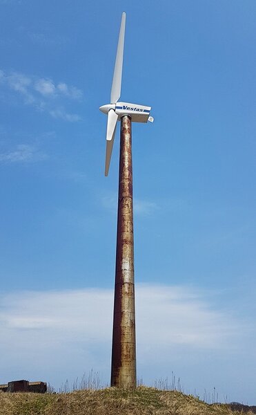 Неподалёку, как одинокий часовой, замер неисправный ветрогенератор. Местные говорят, это был подарок от японцев, но проработал он недолго. Любопытно, что с другой стороны посёлка два его собрата до сих пор исправно трудятся.