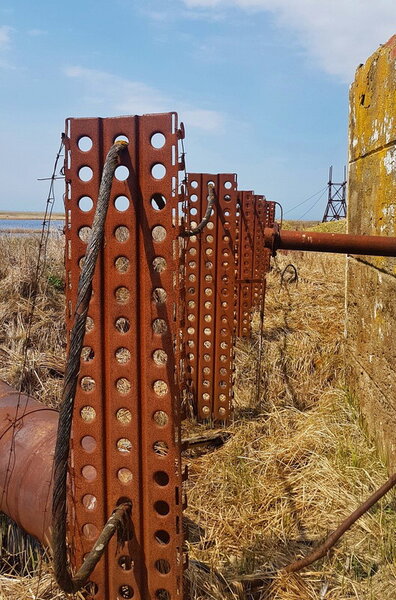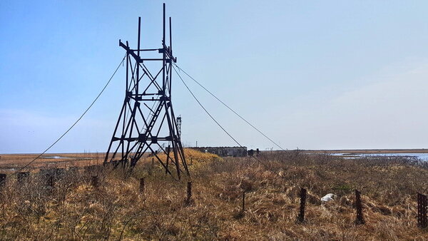 Интересная деталь: силовой кабель когда-то был проложен на импровизированных столбах, сделанных из элементов сборной взлётно-посадочной полосы.