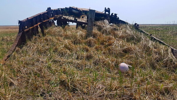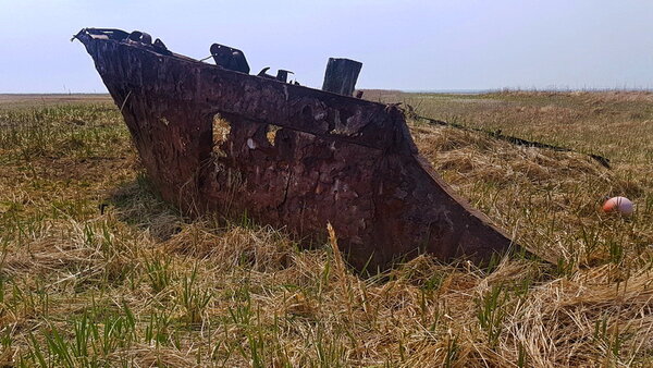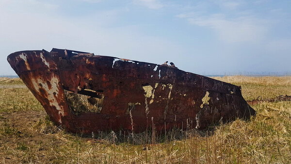 По дороге то и дело попадаются призраки прошлого — останки старых японских рыбацких шхун, намертво вросшие в землю и траву.