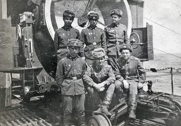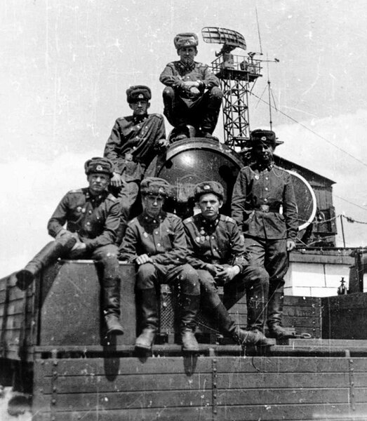 Вот фотография расчётов, найденная в сети. На заднем плане чётко видна та самая вышка с локатором, а на крыше дизельной — надстройка с большим прожектором.