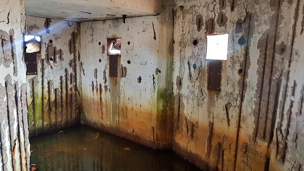 Внутри — груда металла: части генератора и остов одного из дизелей.
