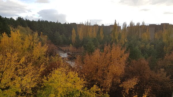 С этой точки видна не только Припять, но и её окрестности. И на самом горизонте…