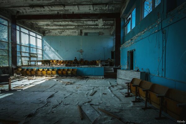 Актовый зал, где когда-то звучали голоса студентов и аплодисменты.