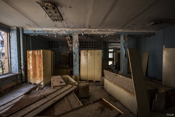Одно из помещений, которое после аварии было приспособлено под нужды ликвидаторов. Здесь кипела работа, совсем иная, чем та, для которой здание строилось изначально.