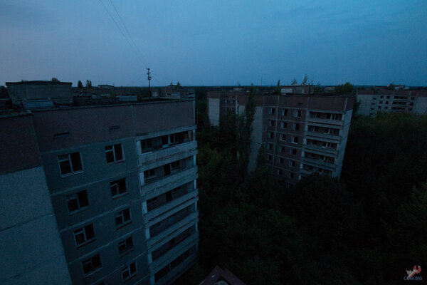 Спускаясь по лестнице, мы старались идти как можно тише, но каждый шаг, каждый хруст ветки отдавался эхом по всему микрорайону. И это было слышно повсюду, но никто не решался выйти навстречу — разве только наши знакомые, с которыми мы договорились заранее. Дворы погружены в абсолютную темноту. Если замереть и прислушаться, можно уловить отдалённый гул атомной станции. В остальном — гробовая тишина, которую лишь изредка нарушают звуки природы: внезапный крик птицы, рычание лося или чья-то неосторожность, когда кто-то наступает на гнилую ветку и выдаёт себя громким матом.