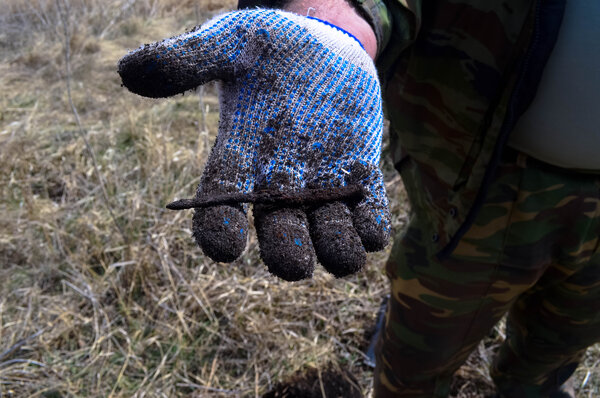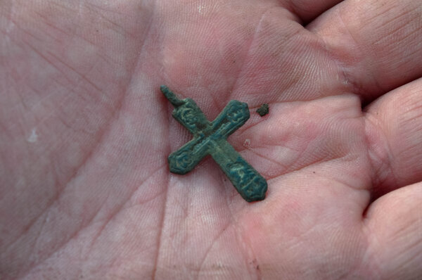 Среди обилия современного мусора мне удалось обнаружить несколько любопытных находок: старинный нательный крест (вероятно, начала XX века), кованый гвоздь и лошадиную подкову.