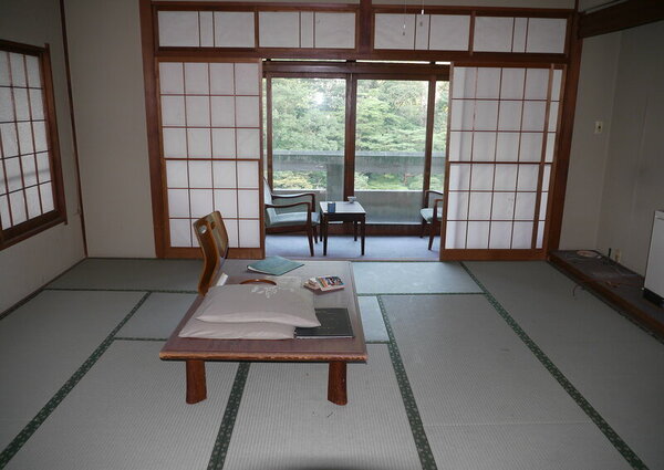 А вот и сами номера. Небольшие комнаты оформлены в традиционном стиле: пол покрыт татами, стоят низкие столики.