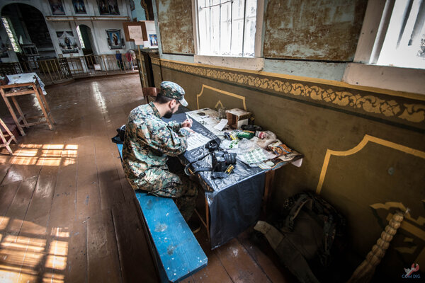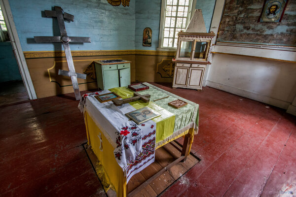 На столике у входа мы обнаружили оставленную кем-то еду — крупы и тушенку. Среди нелегальных сталкеров существует негласная традиция: оставлять припасы для следующих путников на видном месте. Мы нашли такой «клад» и, конечно, забрали его. Взамен оставили что-то из своих запасов, подписав, от кого. Удивительно, но факт: даже если храм проверяют патрули или лесники, они, видя эти заначки, ничего не трогают. Похоже, здесь действует правило: «Берите, что нужно, но только не попадайтесь нам на глаза».
