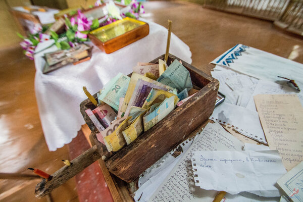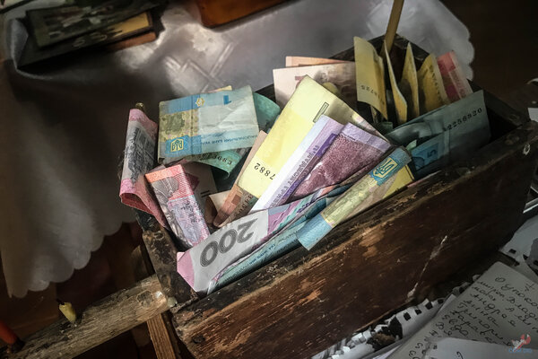 Вы когда-нибудь находили деньги, просто лежащие вот так, на виду? Мы столкнулись с таким впервые. Возможно, их оставляют такие же нелегальные путешественники, как мы. Возможно, сюда иногда привозят легальные туристические группы. Но это не столь важно. Даже среди нас, людей не особо верующих, нашлись те, кто внес свою скромную лепту. Это место подарило нам море эмоций. Позже, показывая фотографии этой церкви друзьям и говоря, что это Чернобыльская зона, я поначалу натыкался на недоверие.