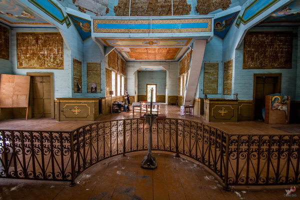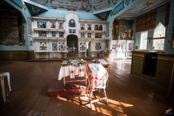 Важно понимать контекст: храм стоит в окружении десятков мертвых, заросших бурьяном домов, в 16 километрах пешего пути от знаменитой Припяти. По дороге мы не встретили ни одной живой души — только тишину и забвение.