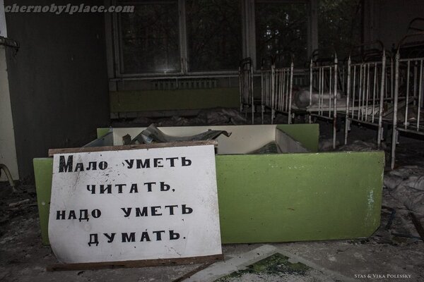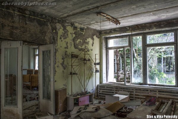 Кроватки и остальная мебель находятся в плачевном состоянии. После катастрофы на Чернобыльской АЭС здесь побывали не только ликвидаторы, но и мародёры, что добавило разрушений.