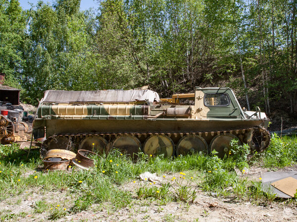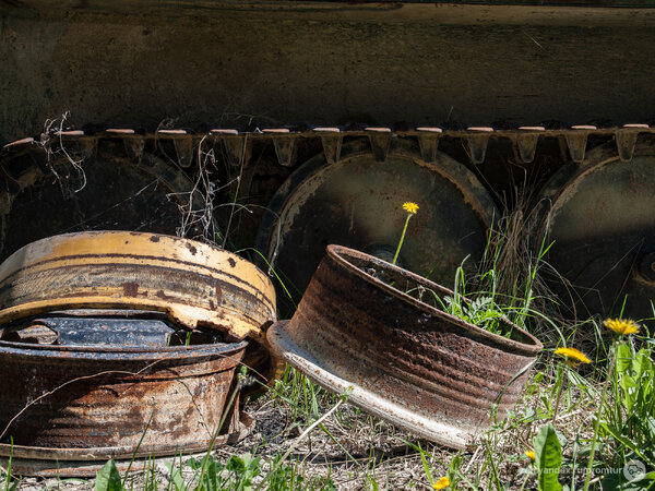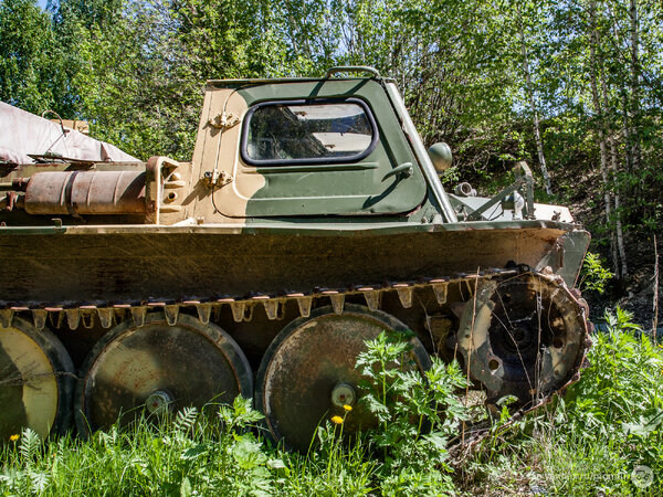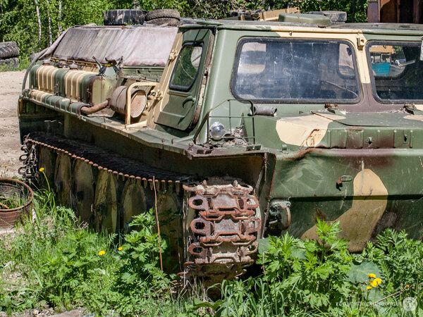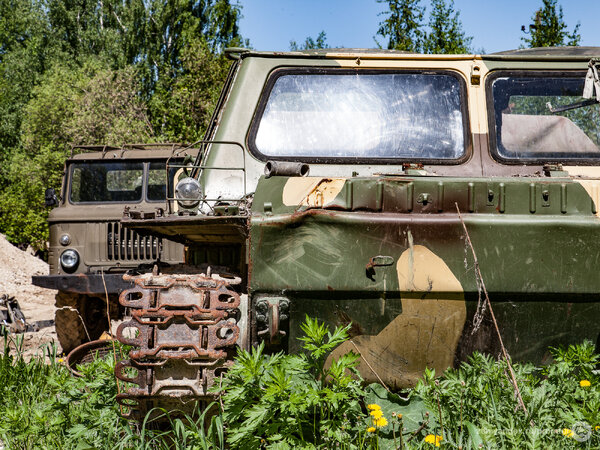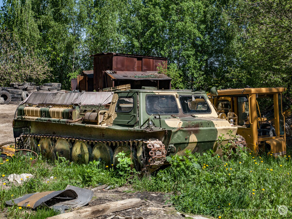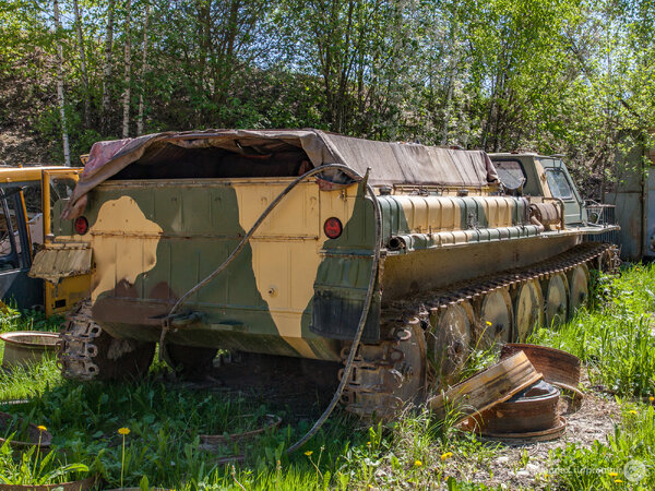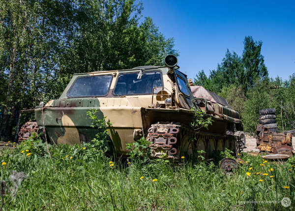 Отметив точку в навигаторе, я отправился к странной находке пешком. Так, совершенно буднично, среди поля, усыпанного одуванчиками, мне посчастливилось обнаружить уникальный ГТ-СМ (ГАЗ-71) — легендарный советский гусеничный транспортёр-снегоболотоход.