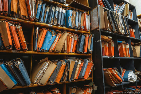 Каждая папка аккуратно стоит на своей пронумерованной полке.