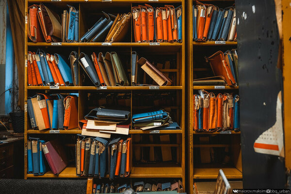 Здесь хранится документация не только инженерного корпуса. Вот, например, справа лежат документы из прессово-сварочного цеха.