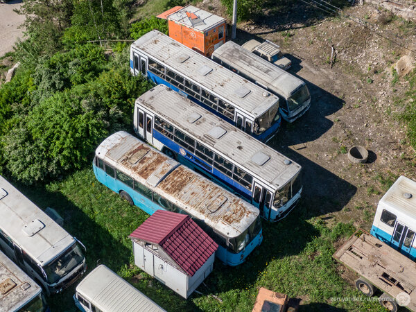 Здесь стоят повидавшие виды «Икарусы» и настоящая ретро-легенда — голубой ЛАЗ-695.