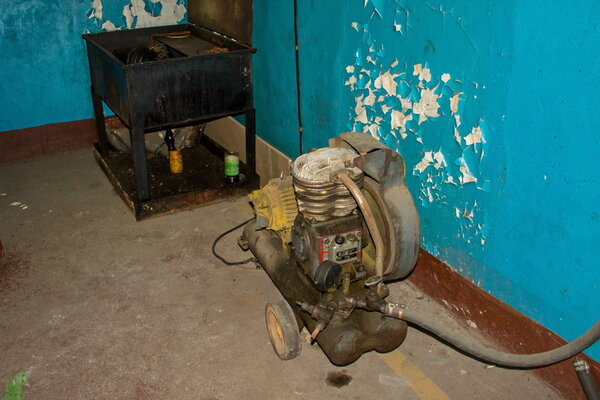 У самого выхода, будто в последний момент забытый, лежит компрессор. Встречаются и другие предметы, назначение которых сейчас уже не сразу и угадаешь.