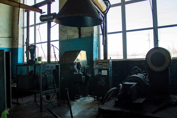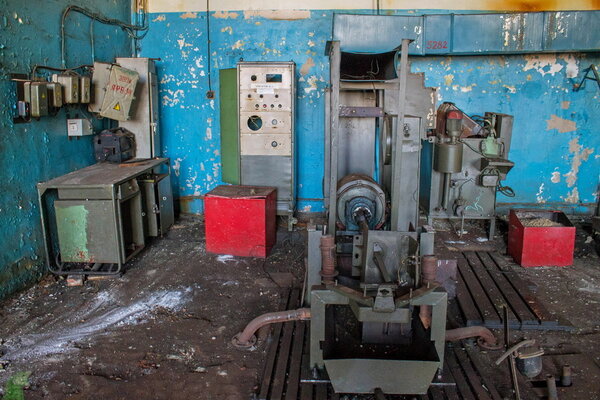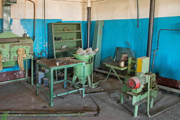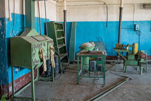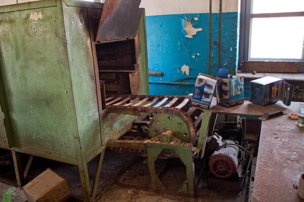 Проходим в боковые пристройки. Здесь оборудование когда-то было законсервировано, но теперь ясно, что эта консервация оказалась вечной. Слишком оно устарело и изношено, чтобы конкурировать с современными аналогами на тех заводах, что смогли вовремя модернизироваться. Его удел — быть сданным в утиль.