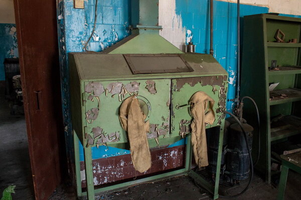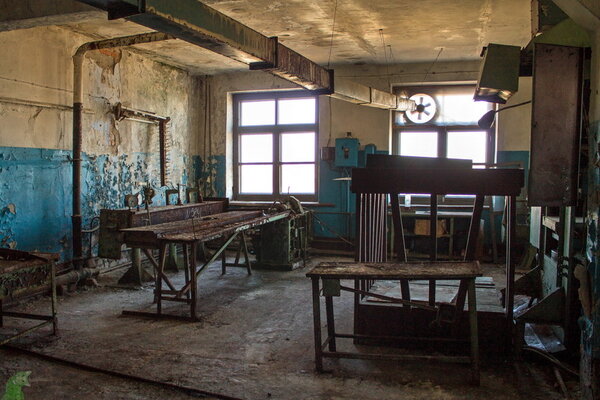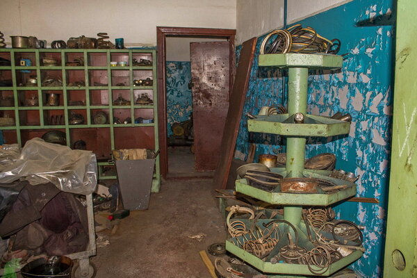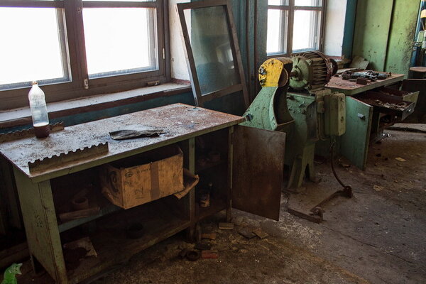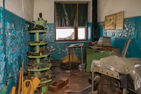 Спускаемся на этаж, отведённый под мастерские. Здесь время будто остановилось. Удивительно, но эти помещения практически не пострадали от рук мародёров, хотя весь мелкий инструмент, конечно, давно исчез.