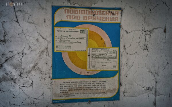 На стене до сих пор висит информационный стенд. Удивительно, но спустя десятилетия текст на нем прекрасно читается, будто время здесь замерло.