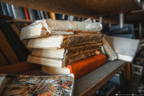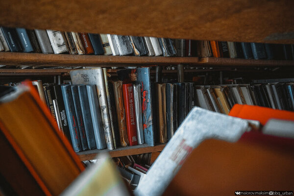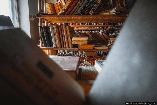 На полках, покрытых толстым слоем пыли, покоились книги. Их судьба была уже предрешена, и от этого зрелища становилось особенно грустно.