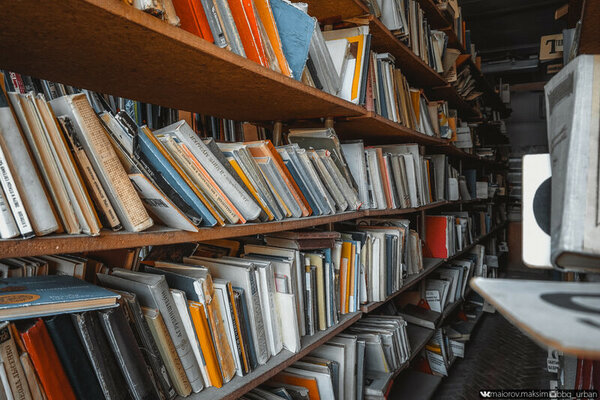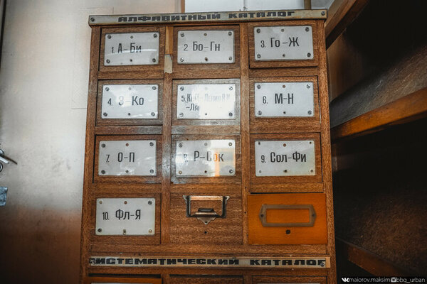 Нам удалось застать библиотеку почти в целости, незадолго до её печального конца. Всё ещё стояли на своих местах каталоги — немые свидетели былой системности и порядка.