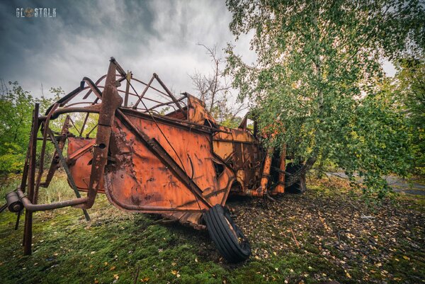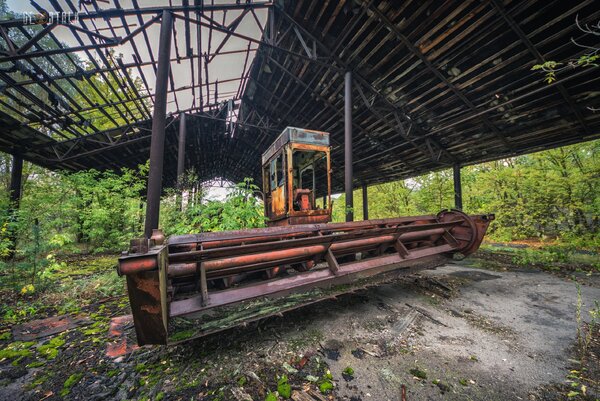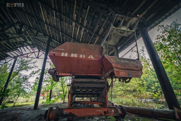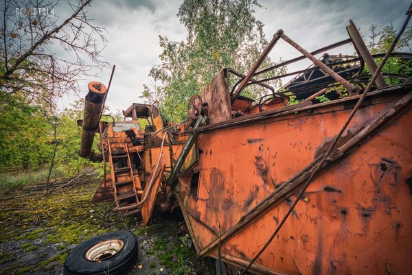 Эта груда ржавого металла когда-то была сельскохозяйственной техникой колхоза у села «Зимовище». Находится она всего в пяти километрах от Чернобыльской АЭС и попала в так называемый «Северный радиоактивный след».