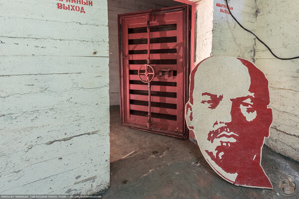 А вот и товарищ Ленин! Вождь Мировой Революции в тех или иных воплощениях — частый гость на постсоветских заброшках, но в бомбоубежище я встречаю его впервые!