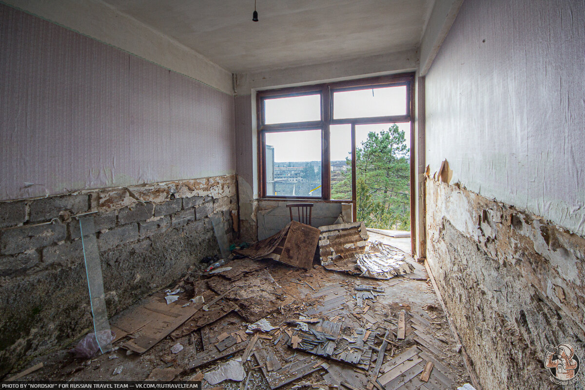 Сам санаторий состоит из двух корпусов. Заброшенный и «полузаброшенный». Оба здания издали выглядят как заброшенные, но один при этом заселён практически полностью, а в другом осталось жить всего пара семей…