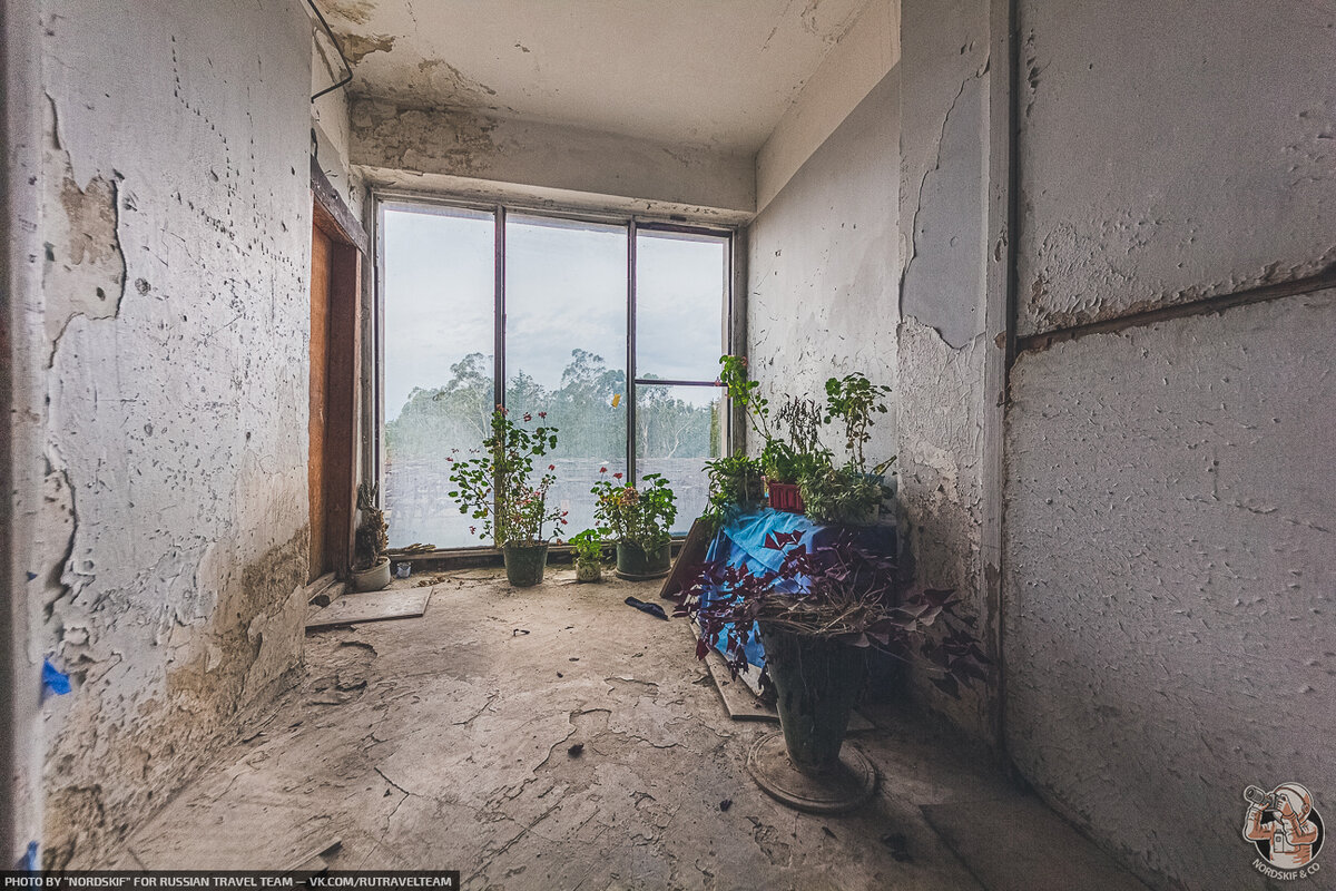 Для меня это было удивительно. Что даже в заброшенном и разваливающимся корпусе кто-то продолжает жить и судя по цветам в горшках даже пытается создать некоторое подобие уюта.