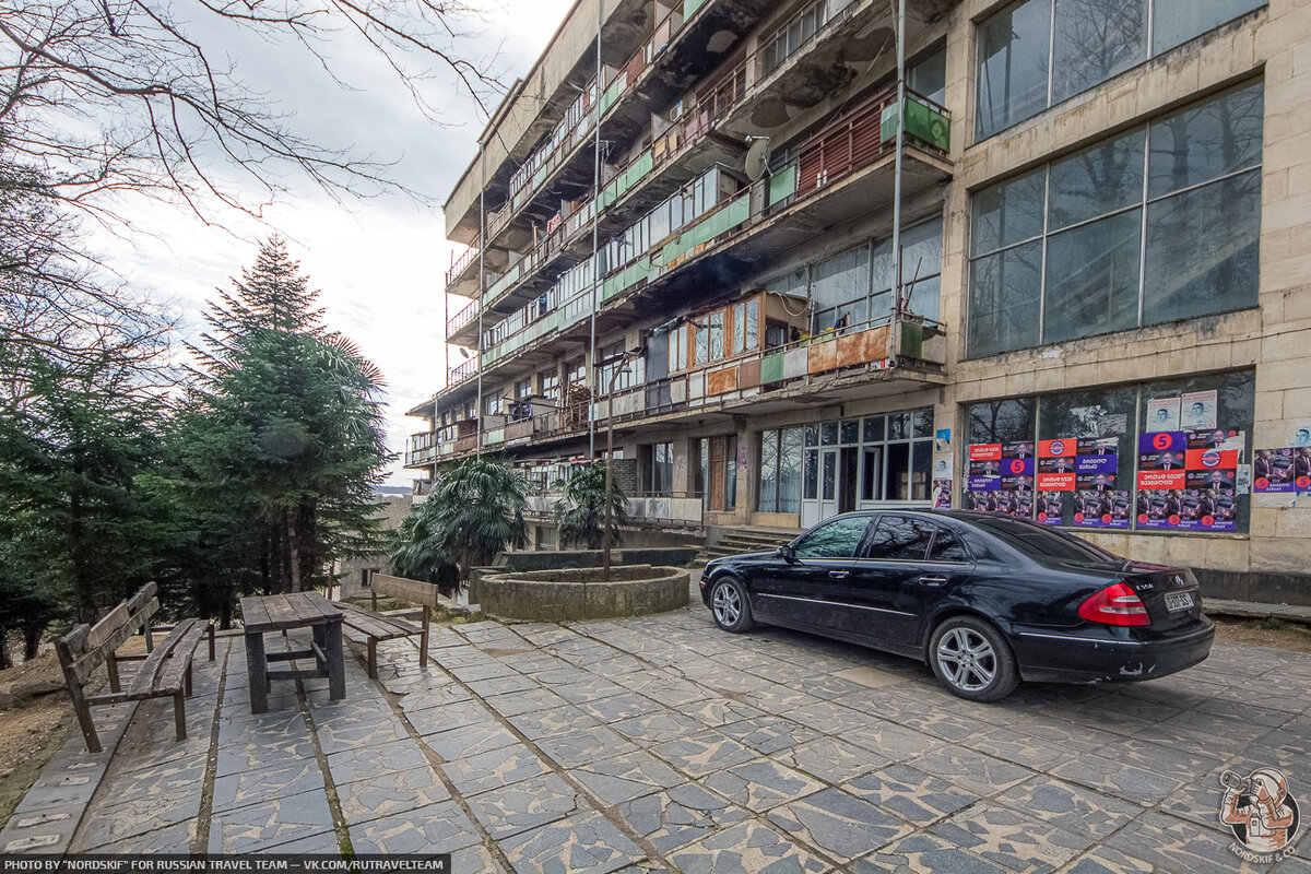 В этот раз мы расскажем про заброшенный и полузаброшенный корпуса санатория «Интурист», что после распада Советского Союза переименовали в «Сакартвело».