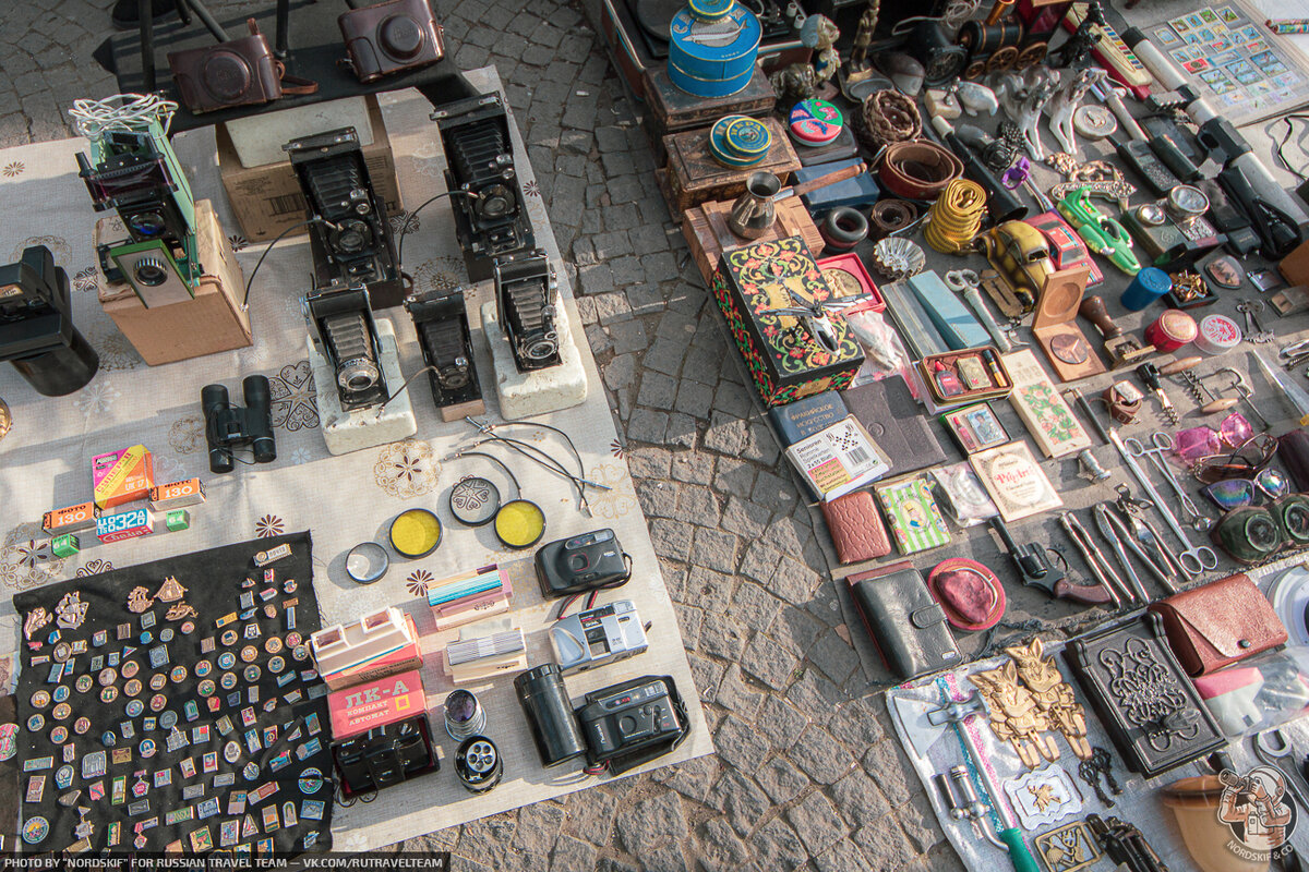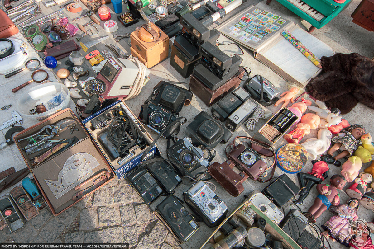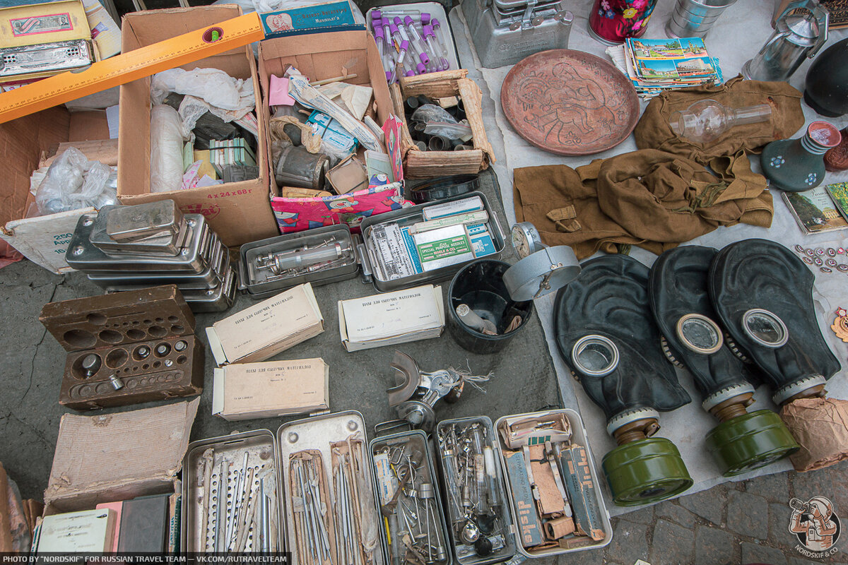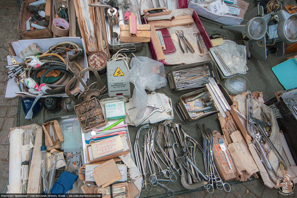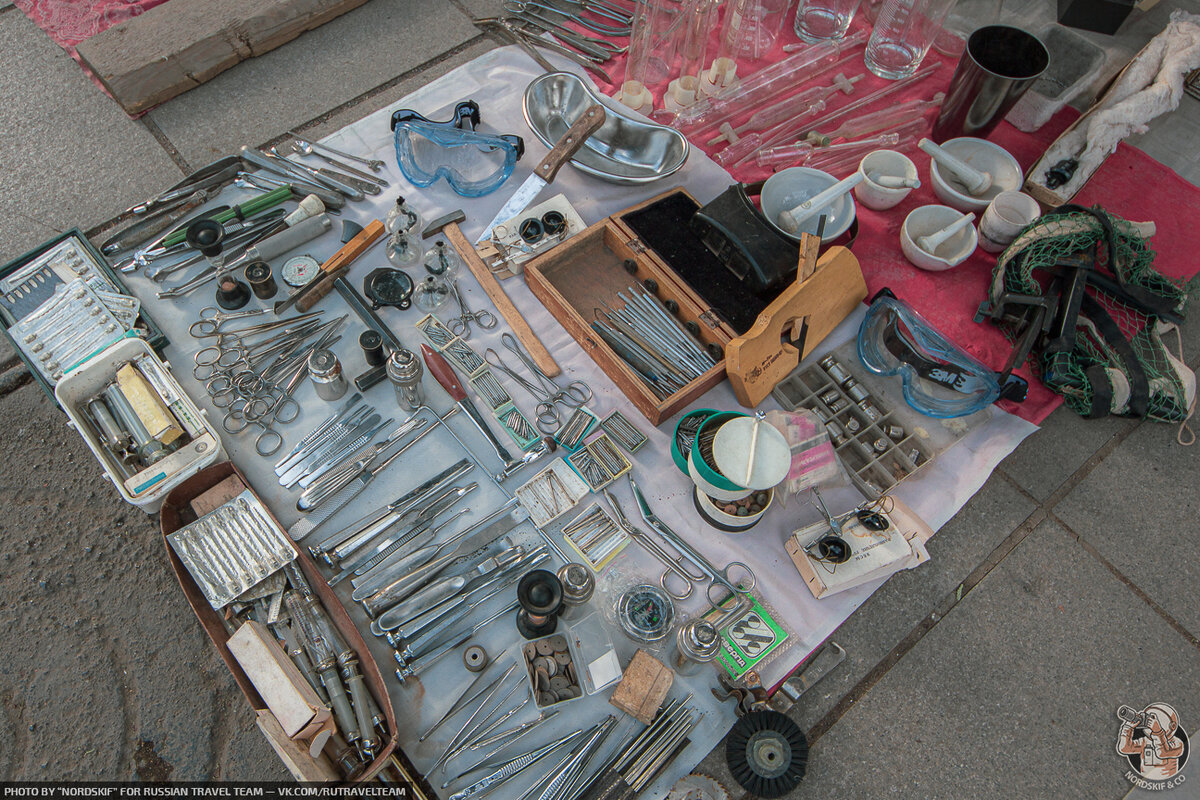 Меня же удивил не столько ассортимент, а сколько разнообразие вещей за одним импровизированным прилавком. По соседству с вязанными вещами торгуют автомобильными номерами, фотоаппаратурой и настоящими хирургическими инструментами!